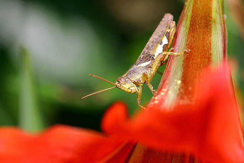 短角異斑腿蝗,斑腿蝗科,體長17~28mm,體色黃褐色或暗褐色,