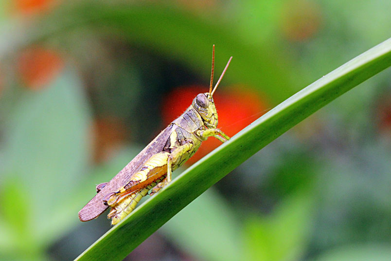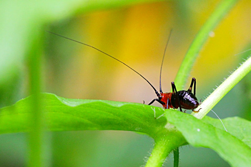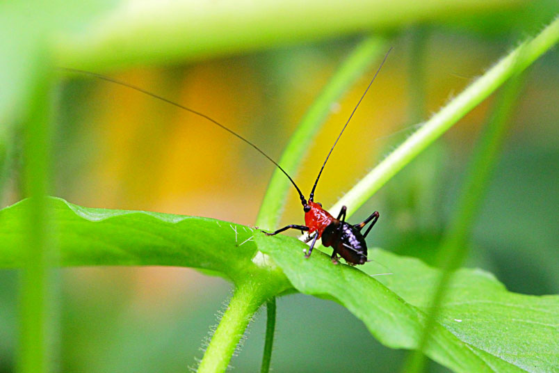 叢活動,體色會隨環境改變,但後腳腿節的黑色斑紋是穩定的。