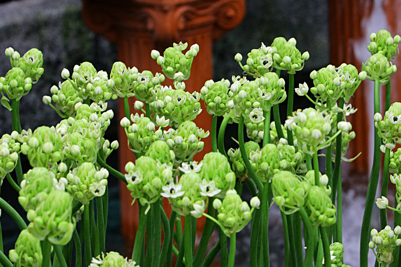 葉片長度約40~60公分,開花球莖直徑5~15公分。花形特殊,常