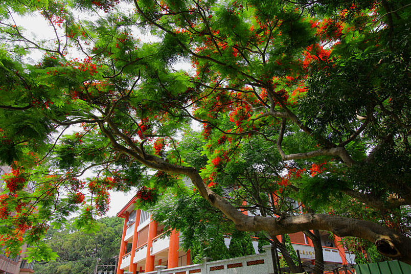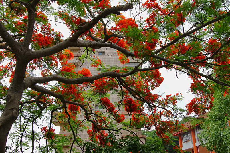 年鳳凰花開,也是校園驪歌響起時分,滿樹火紅花朵之奪目神態,