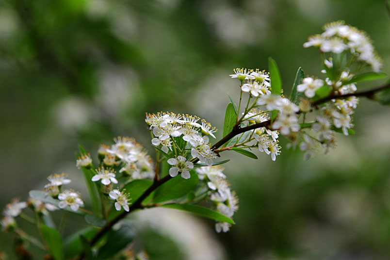 薔薇科常綠灌木,枝多具刺。葉長橢圓形至倒卵形,先端凹但具小