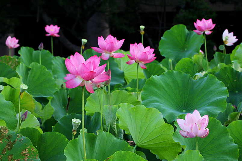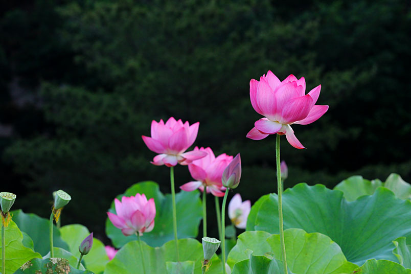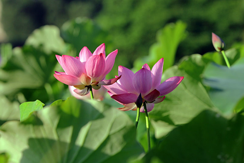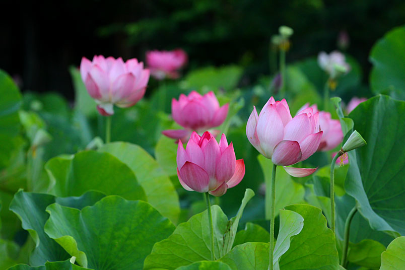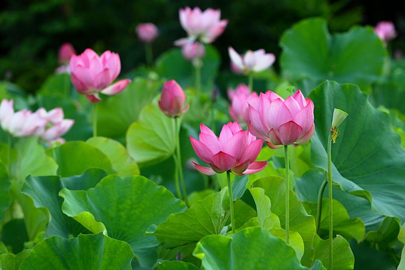 一層層碧綠的荷葉托著優美的荷花,輕輕地搖曳、翩翩地起舞,引來