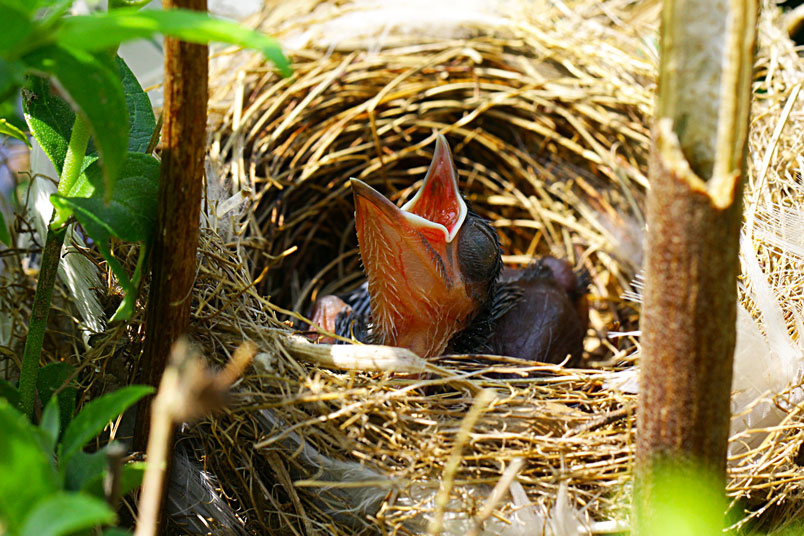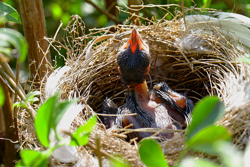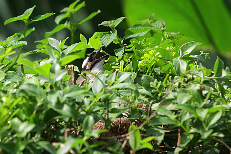在公園的某個角落,發現一個白頭翁的鳥巢,雛鳥嗷嗷待哺的模樣非