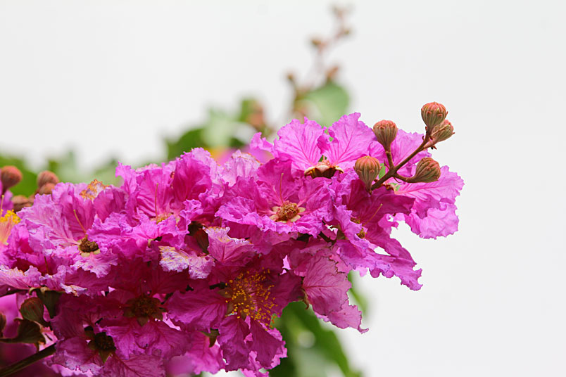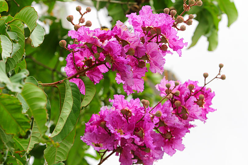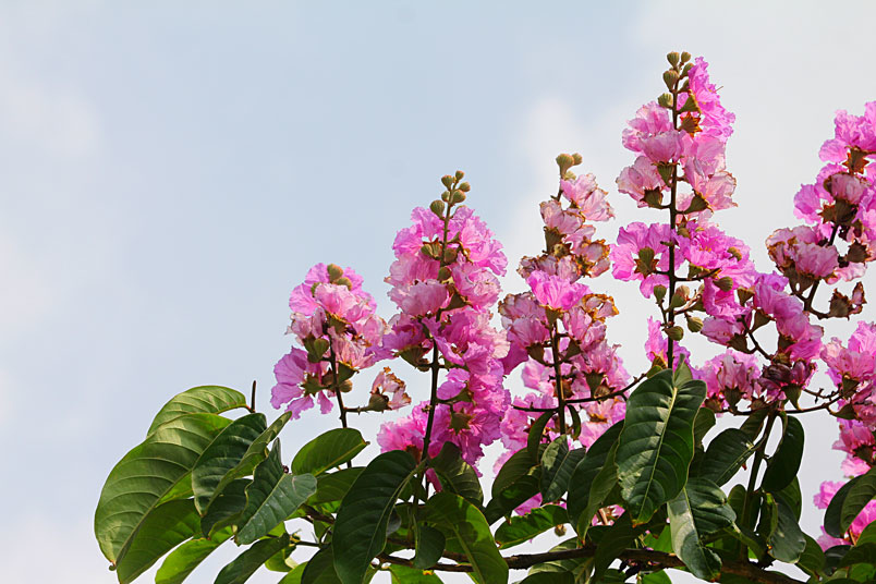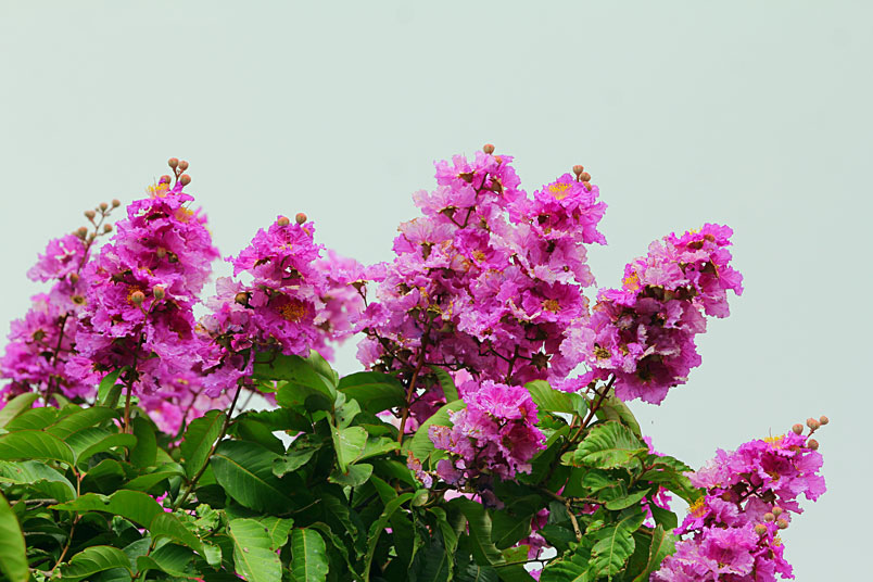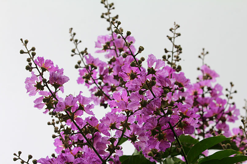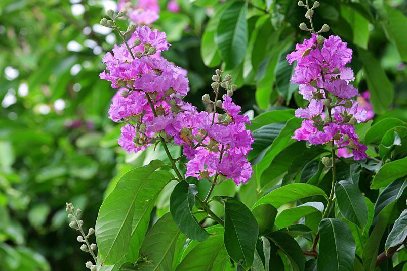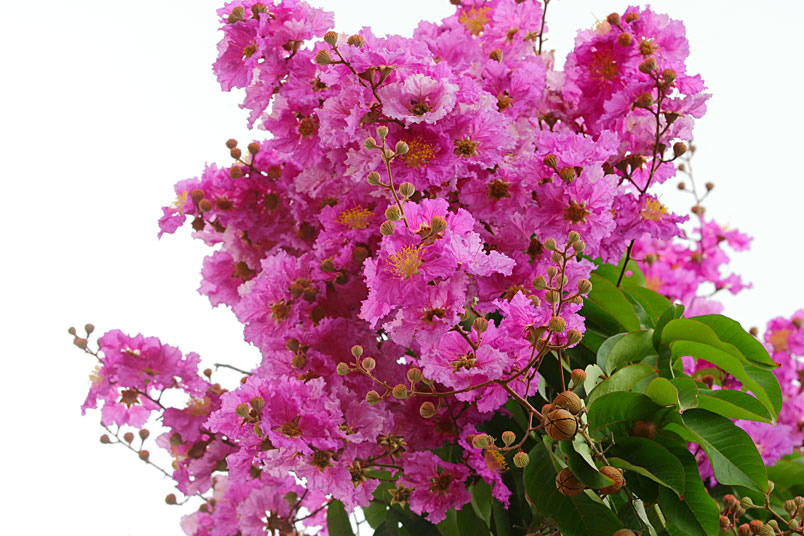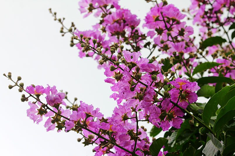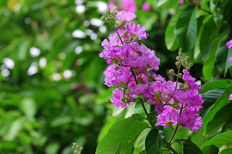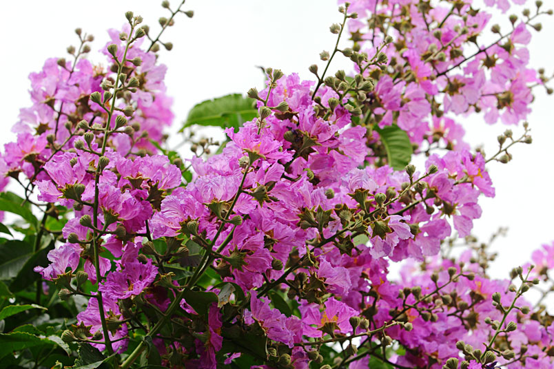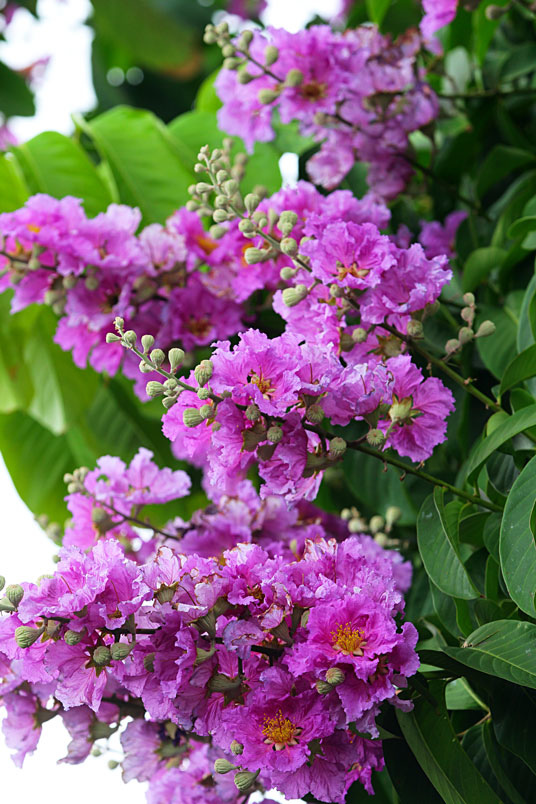 看看大花紫薇開花了沒。樹冠盡是一片迷人的紫,加上密密麻麻的
