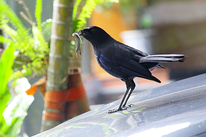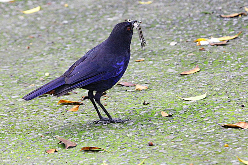 紫色的色澤,羽色為黑色,且帶有藍色或紫色的亮麗光澤。