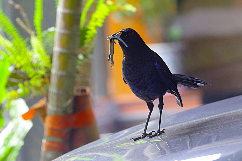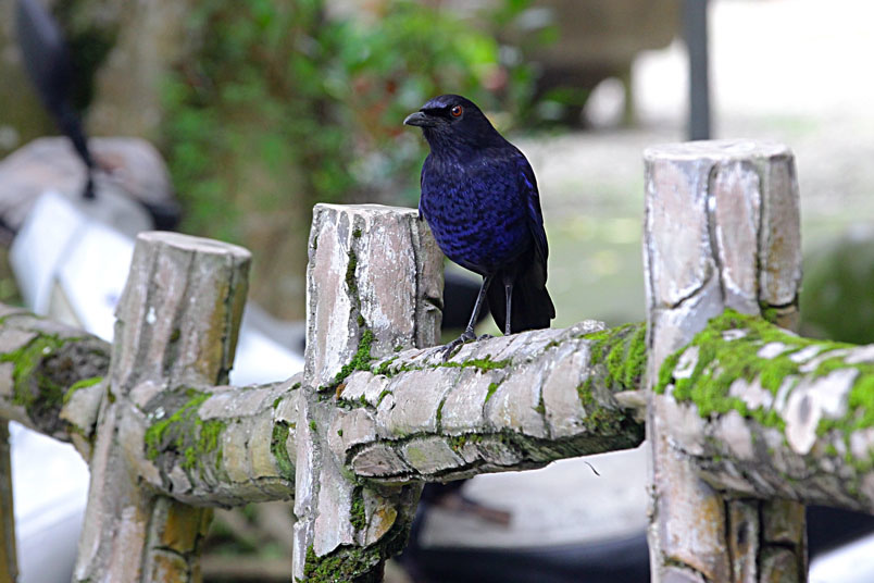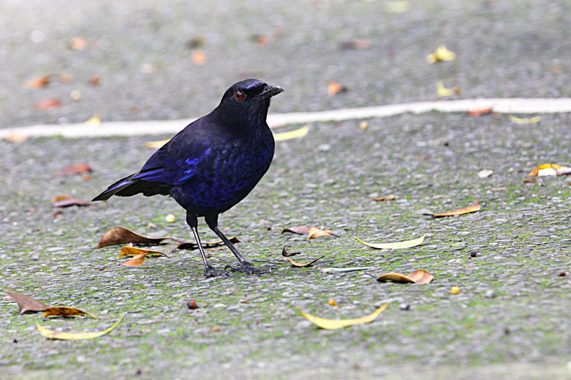 全身羽色暗藍,有時會閃耀著亮藍色光澤的紫嘯鶇,乍看之下好似