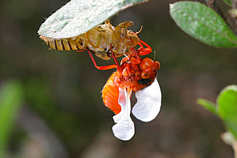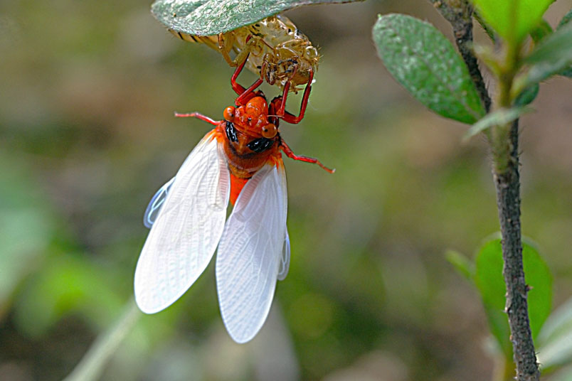 日的土壤中爭先爬出地面,在樹上處處可見蟬蛻的空殼,此時正