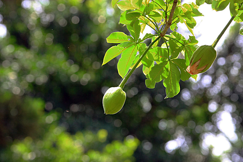 未綻放的花苞碩大飽滿,呈下垂狀圓球形,常被誤以為是果實