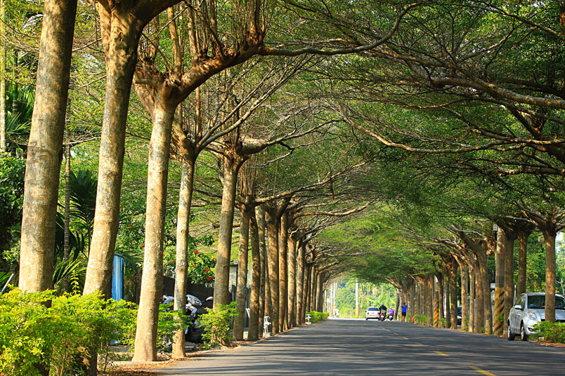 小葉欖仁枝葉將道路覆蓋的相當完整,是當地相當知名的綠色廊道