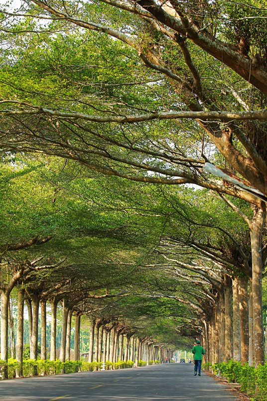 沿途種植將近有500株的小葉欖仁樹,進入泗林綠色隧道內彷彿來