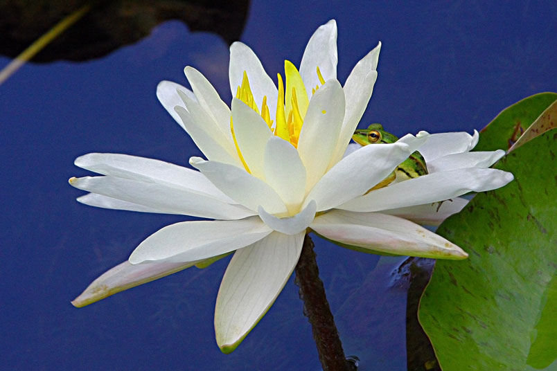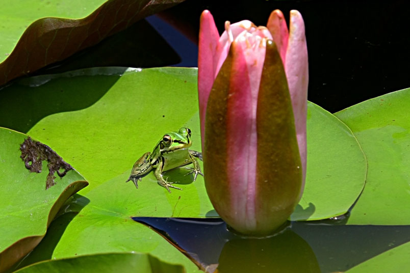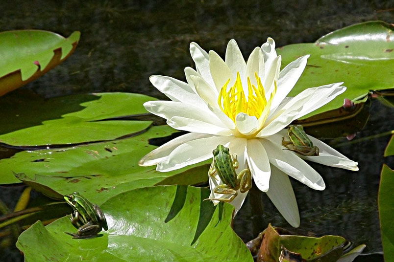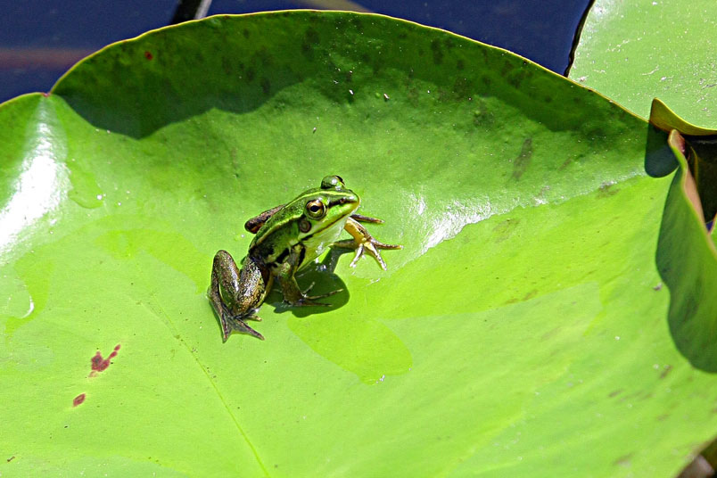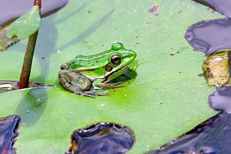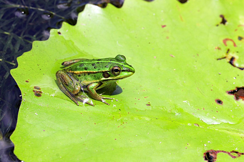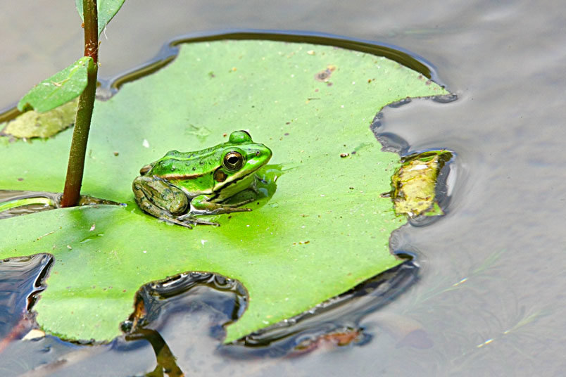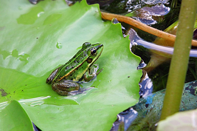 金線蛙生性隱密機警,常常僅露出頭來觀察四周的動靜,若受到干