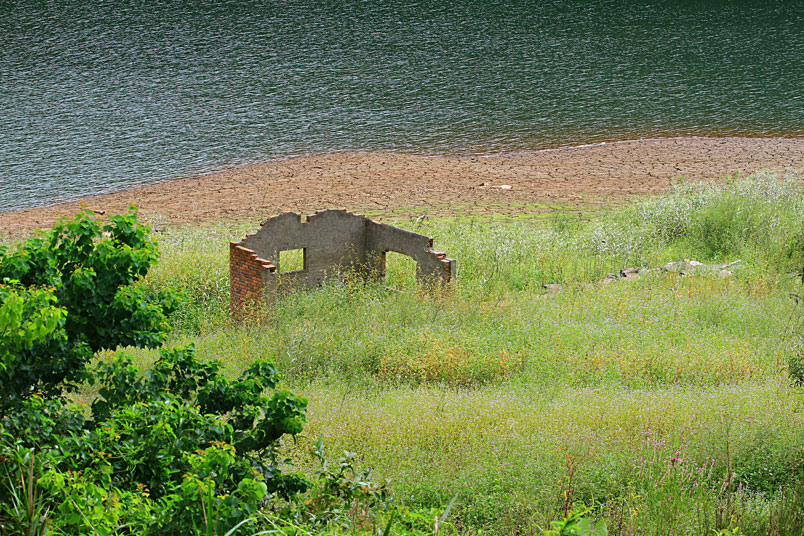 底下,只有枯水期時,斷垣殘壁才會浮現。