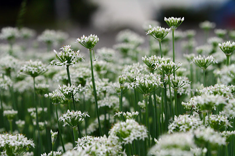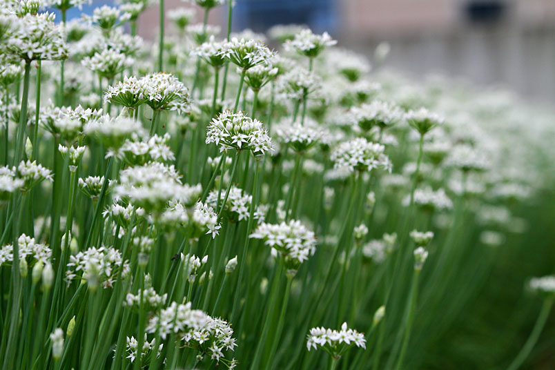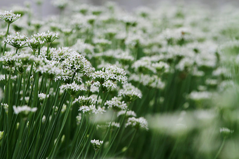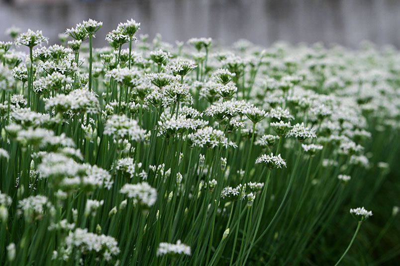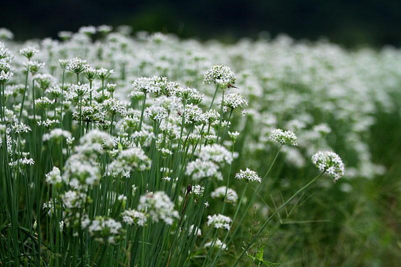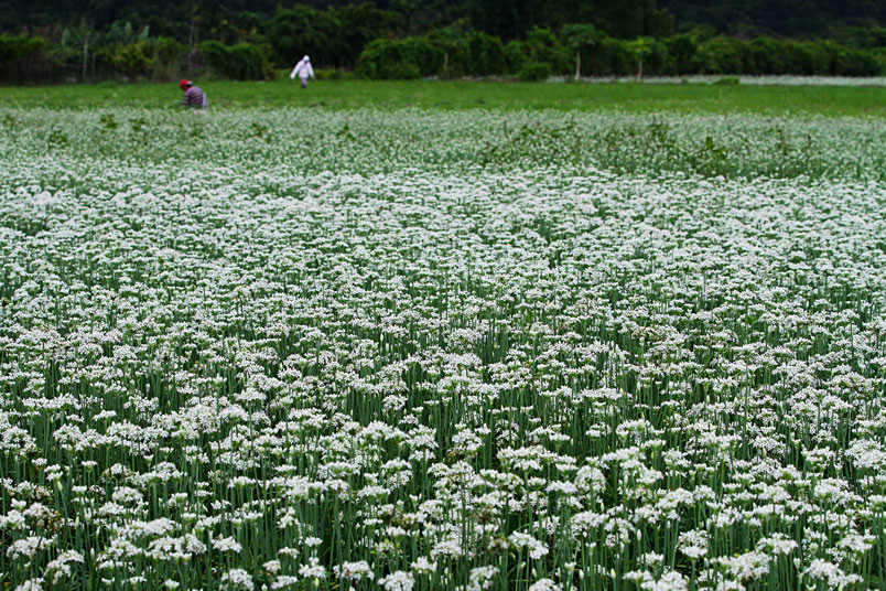 韭菜在田間,遍地盈白,悅目卻保有幾分低調,迎風搖曳的花朵