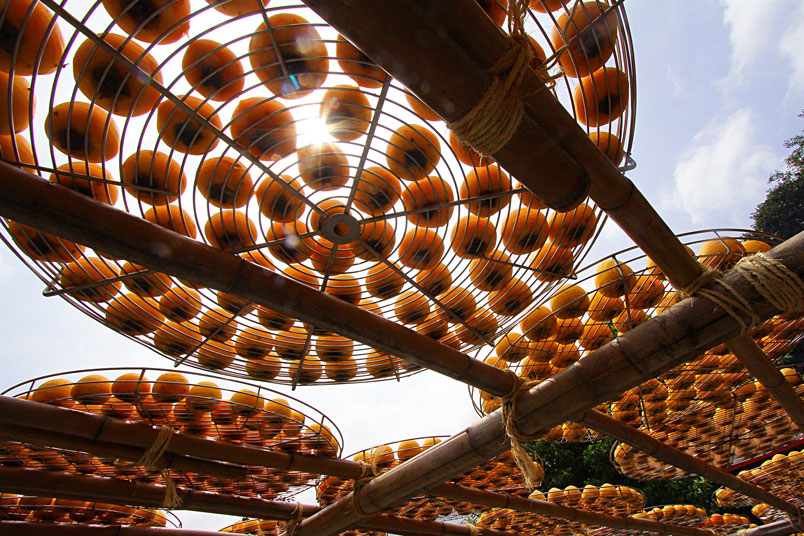 據說柿餅得帶著清晨圓渾的露珠曬日頭做日光浴,才會甜浸入心脾
