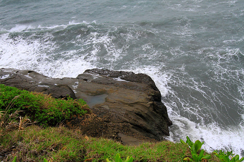 岸而行,經一片九孔養殖場,續行不久,可見一穿越斷崖絕壁之新