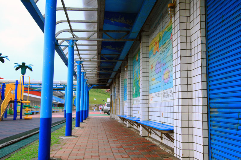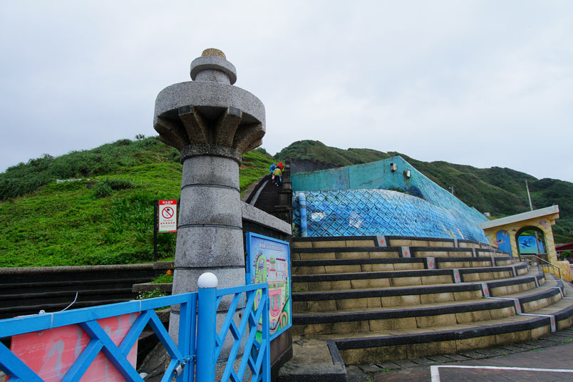 海,操場緊鄰號稱台版「小萬里長城」的鼻頭角步道,背後則是一