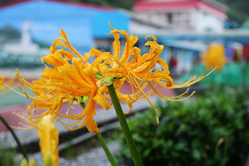 每年10月金花石蒜花開季節,在東北角的鼻頭地區以及國小都可以看