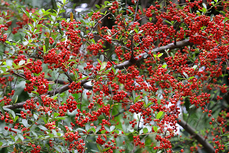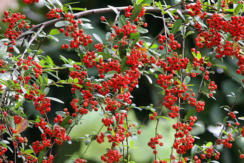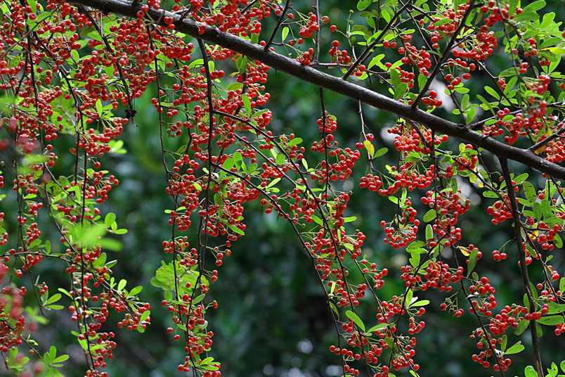 小的果子一簇簇的掛在樹上,猶如火把一樣奪目鮮亮。這就是火棘