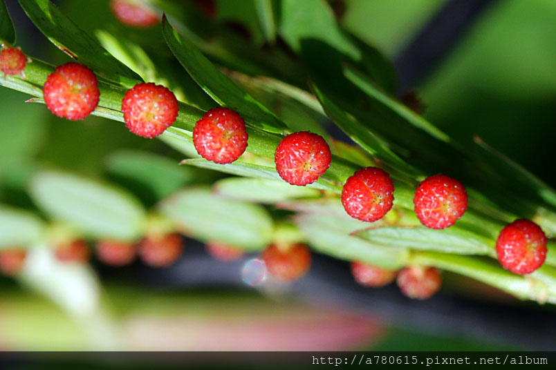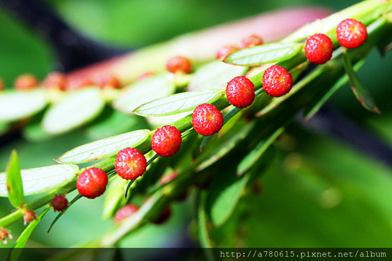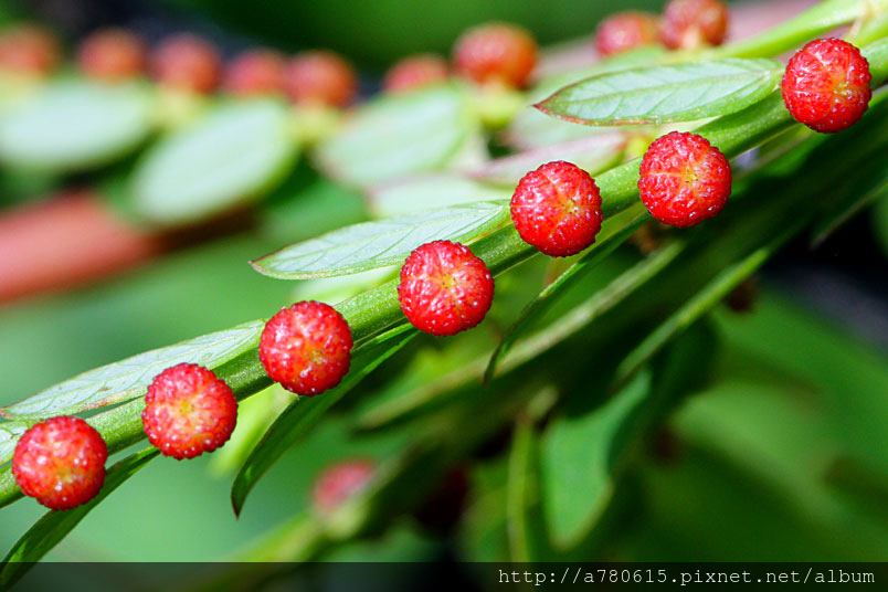 ,所以表面上只看到葉片,但翻開背面,就可以看到許多果實及花