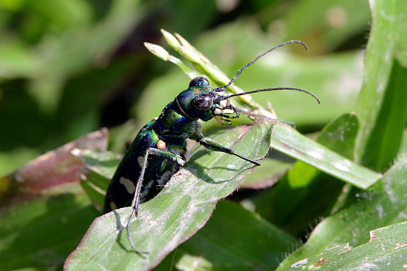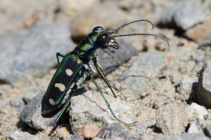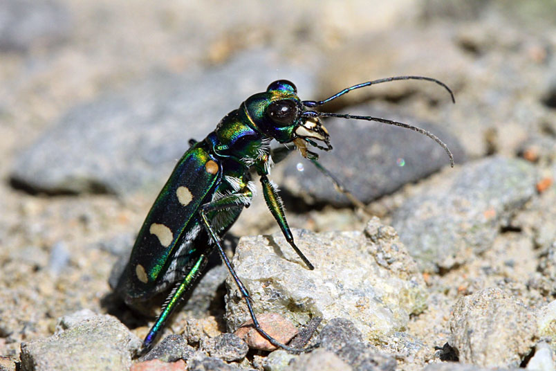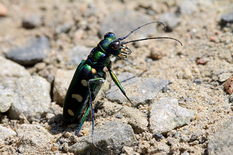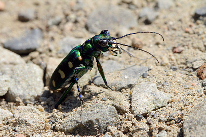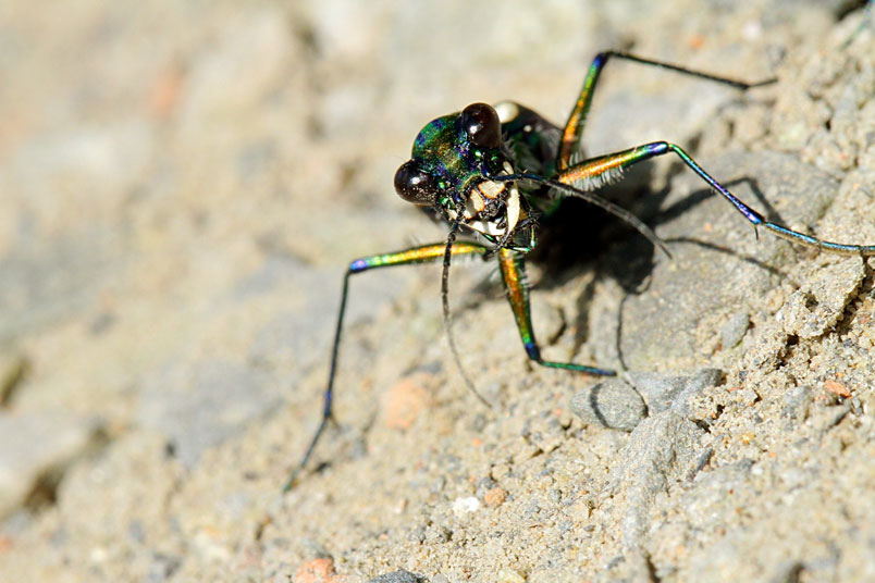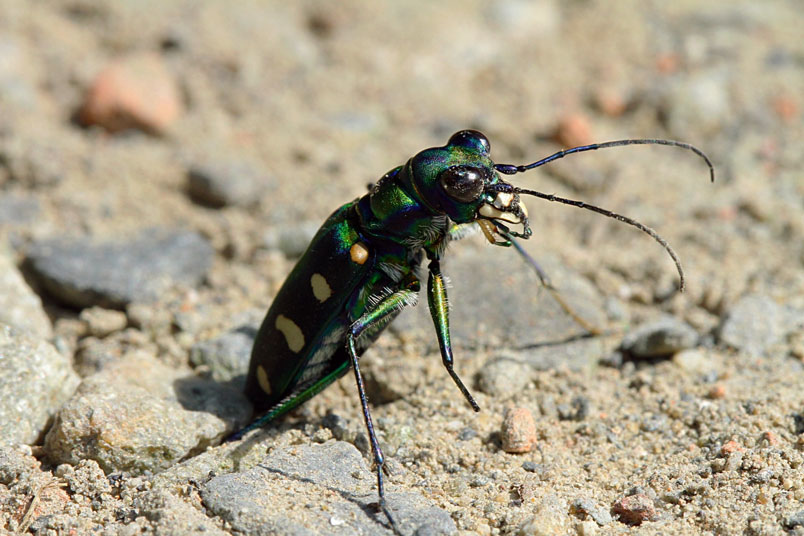 虎甲蟲與其他步行蟲一樣有著像鞭子似的觸角,但是牠的複眼又大