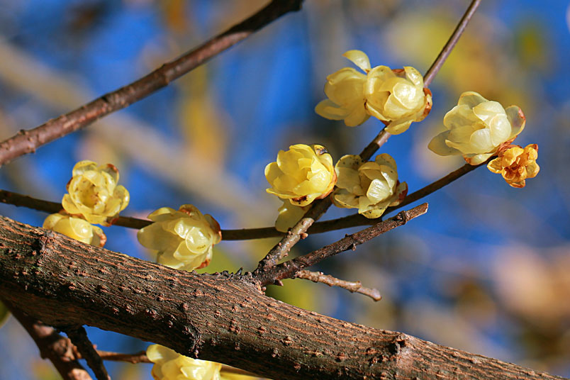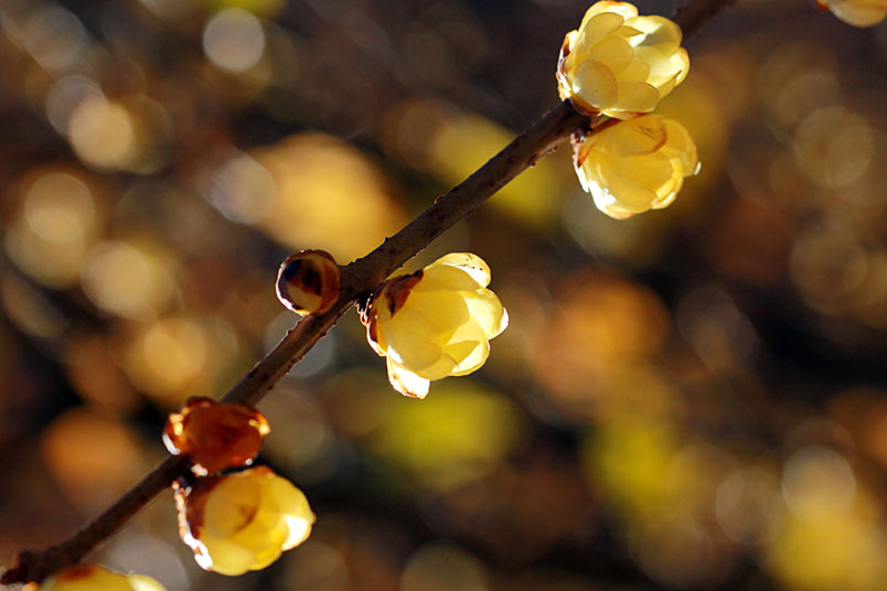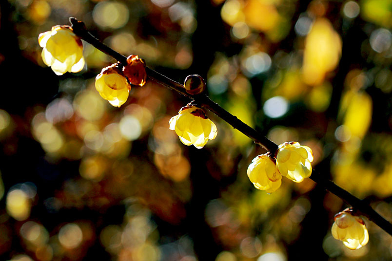蠟梅先於梅花兩個月開放,它是一年中隆冬時節來訪的花中「寒客