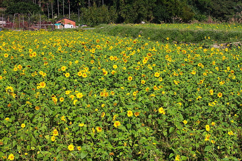 除了主場地的花海外,坑子村八鄰貓尾崎一號橋附近,也有一大