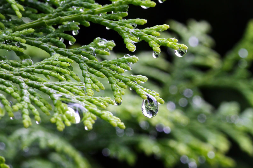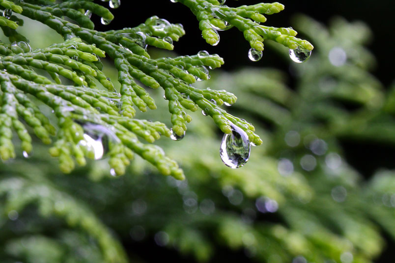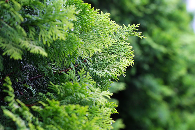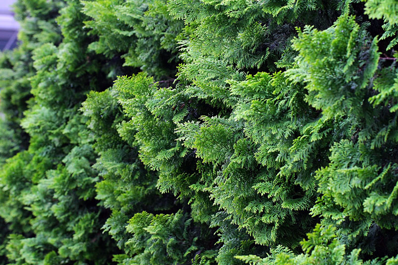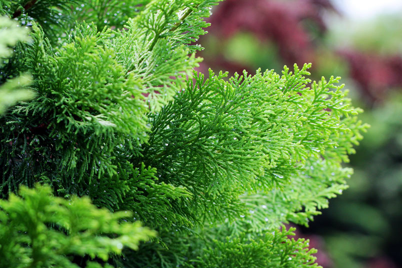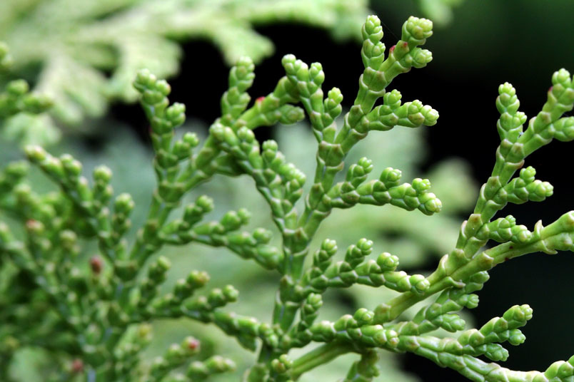 黃金側柏常年青翠,但秋末至早春低溫期,萌發的新芽為金黃色