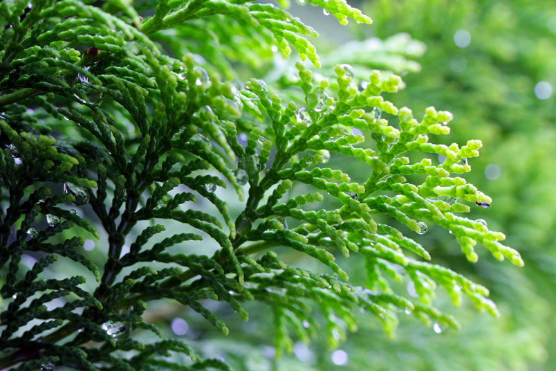 屬於裸子植物,葉子為細小的鱗片狀葉,在枝上覆瓦狀、扁平對
