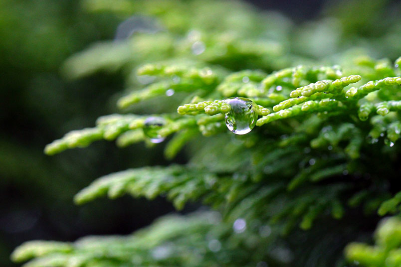圓錐狀,枝葉密集青翠。新芽呈金黃色,在春季發新芽時,新枝