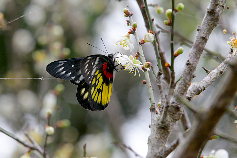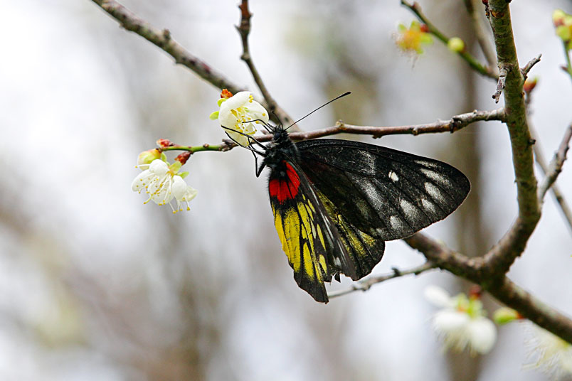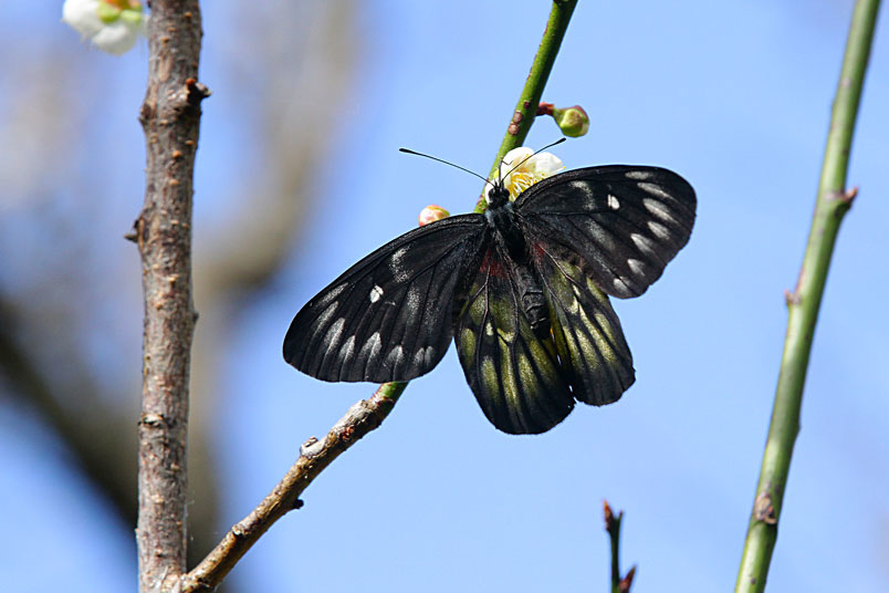 紅肩粉蝶,粉蝶科),展翅60~70mm,雄蝶翅面黑色,翅緣具灰白色