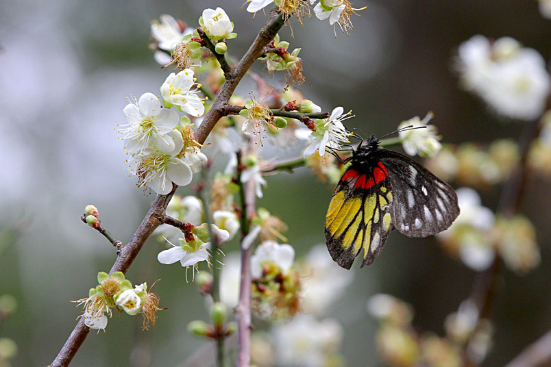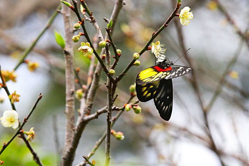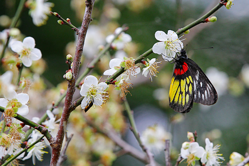 年蝶況非常好,翩翩飛舞的紅肩粉蝶似乎都不怕人,優雅地在梅花