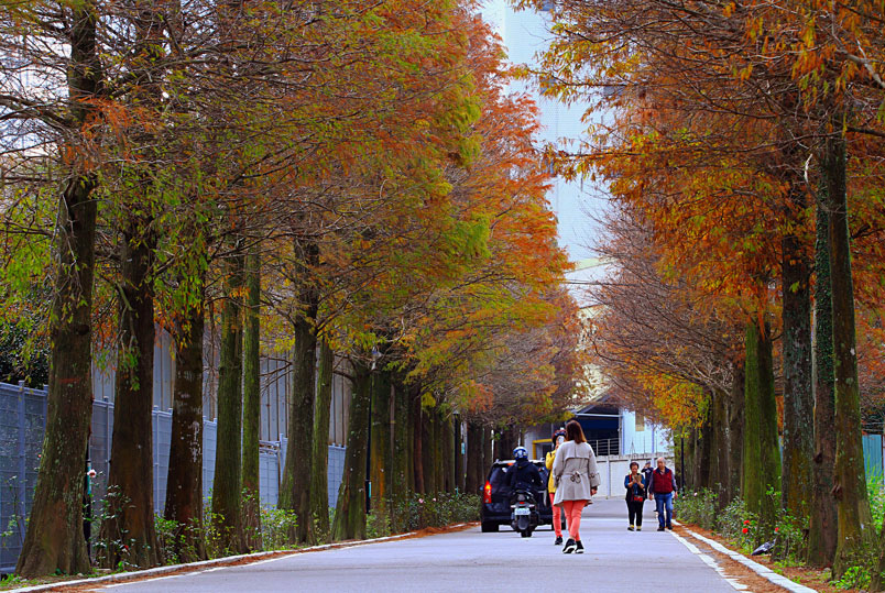 松遍佈的道路改名為落羽松大道,這短短不到1公里長的道路,最初