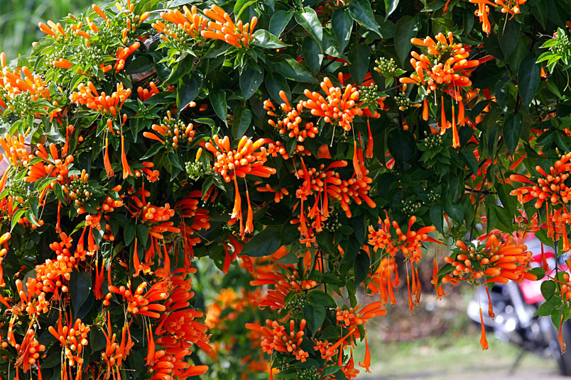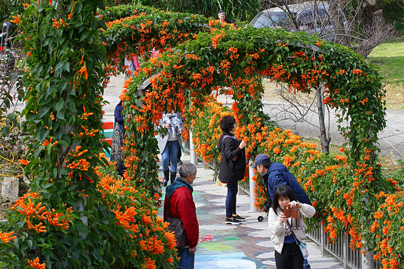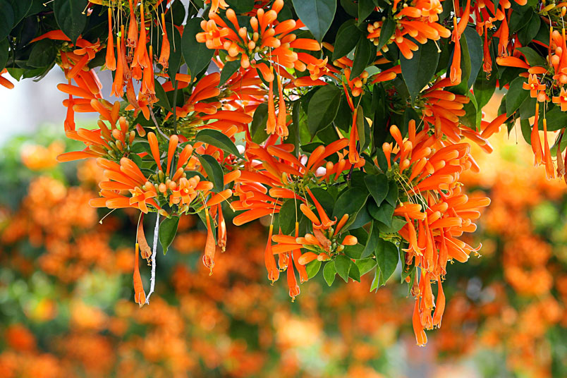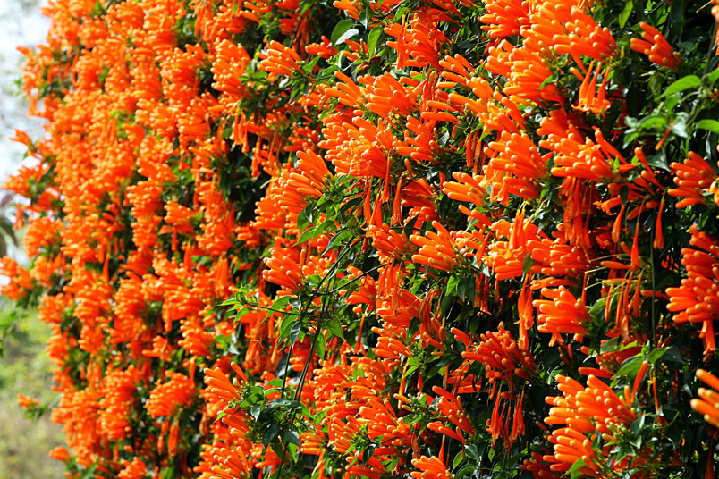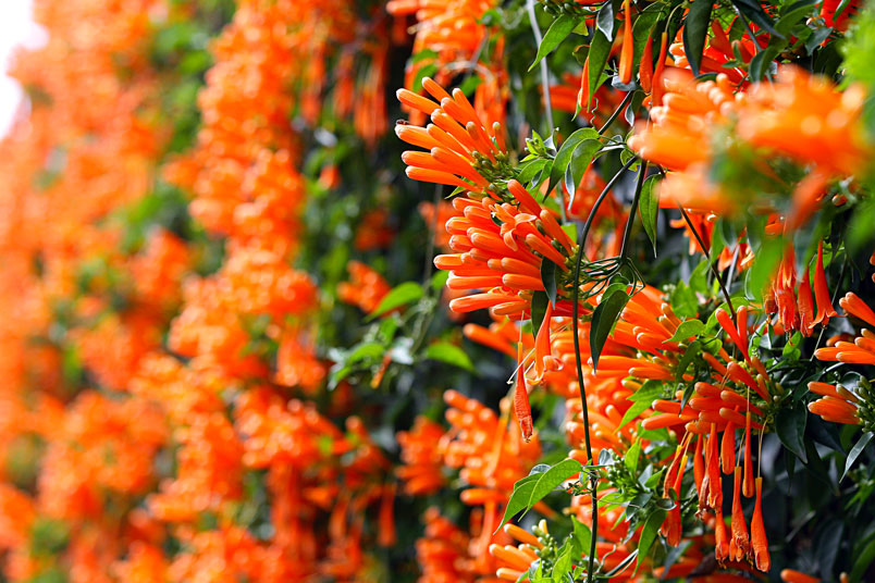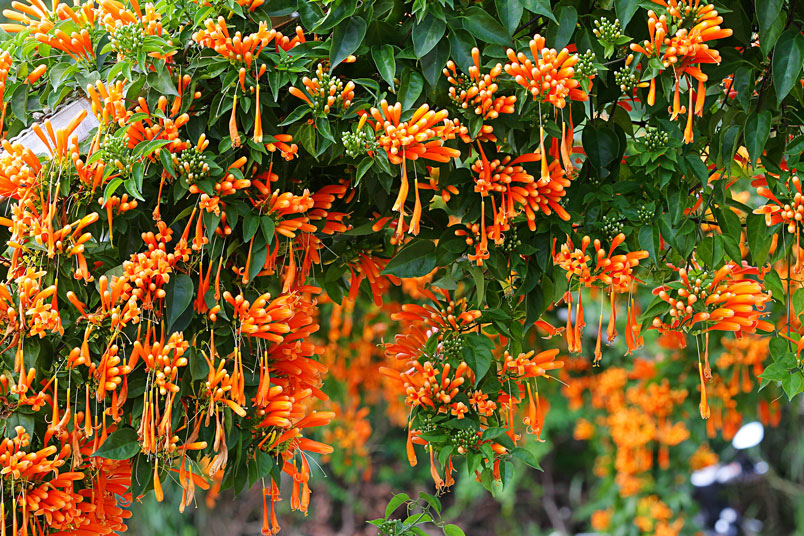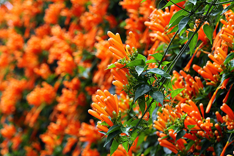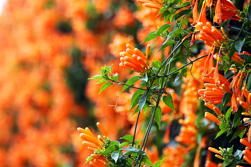 每年的春天,是炮仗花的花期,數以千計的花苞及花朵聚集在一起