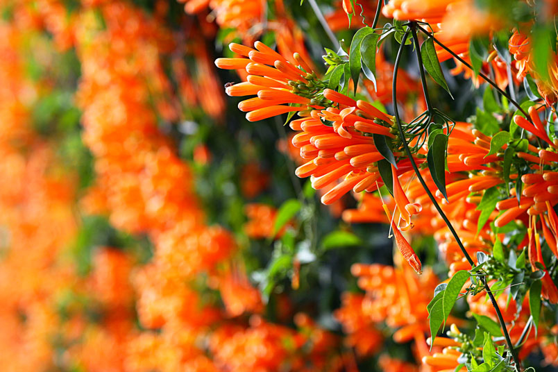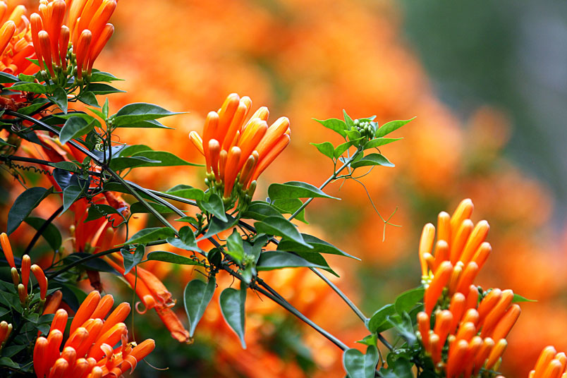 涵。炮仗花開花時,花序累累成串,花蕾似鞭炮,花冠似磬鐘,花