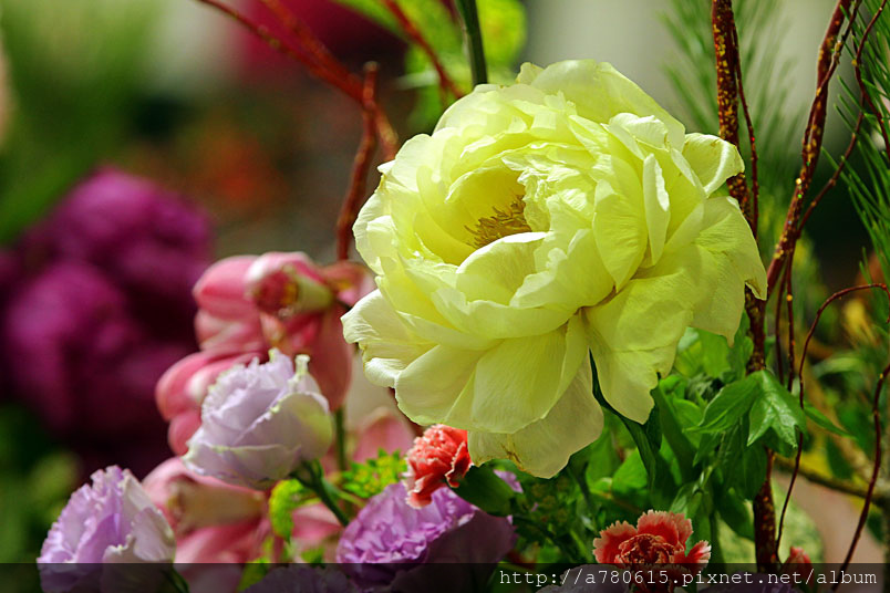 師的巧思下,結合日本牡丹花與優質的國產花卉的春節風花藝裝置
