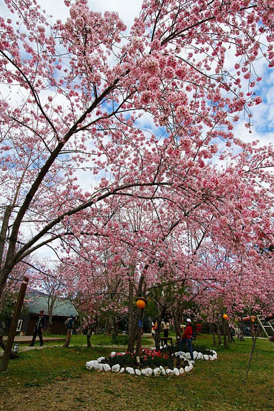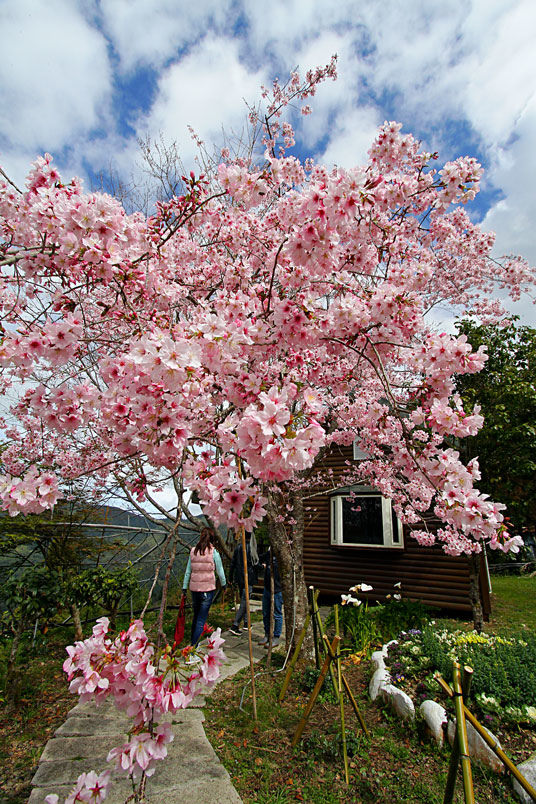 、小木屋、花園、餐廳前等廣場與草地,隨處都看的到櫻花的芳
