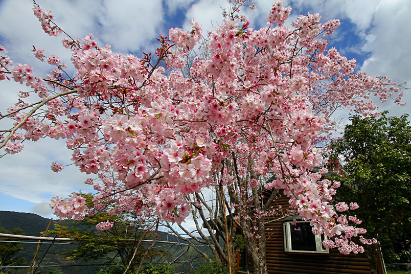 海拔約在1600公尺高的恩愛農場,富士櫻、千島櫻、雪舞櫻輪番