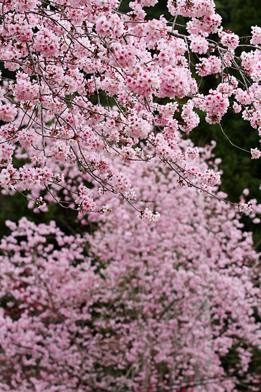 蹤,從初開到盛開,由粉嫩垂椏隨風搖曳再至花海群圍繞著山巒