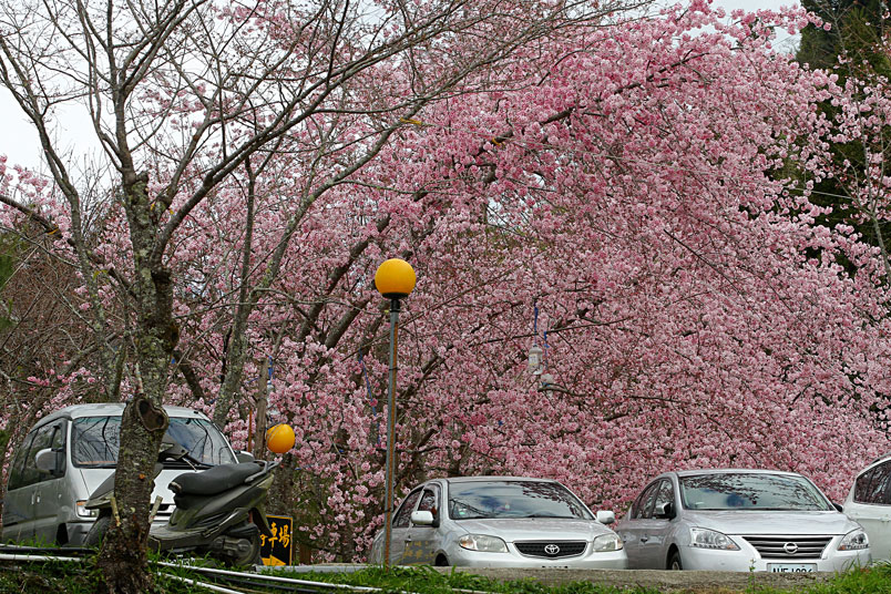 櫻、富士櫻、昭和櫻正陸續盛開,沿途景致美不勝收,而拉拉山