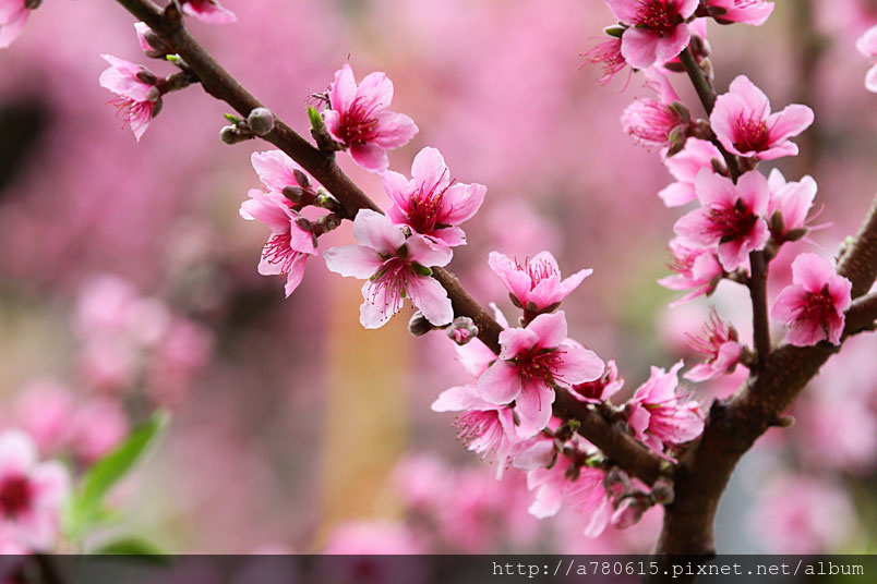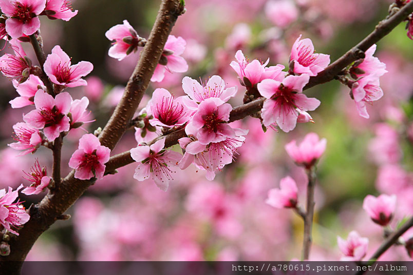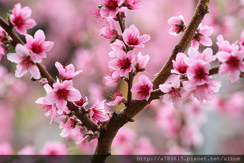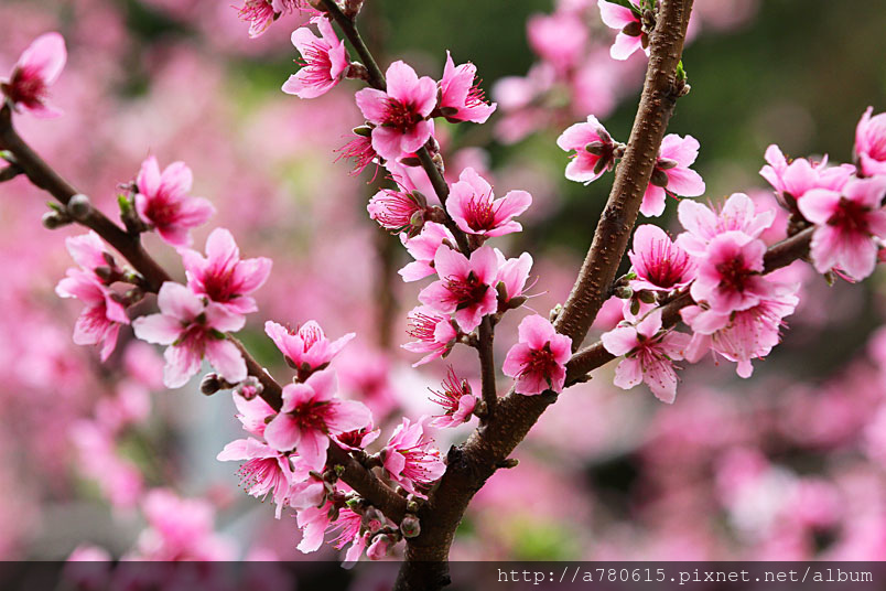 桃花為我國傳統的園林花木,樹態優美,枝幹扶疏,花朵豐腴,色