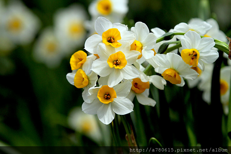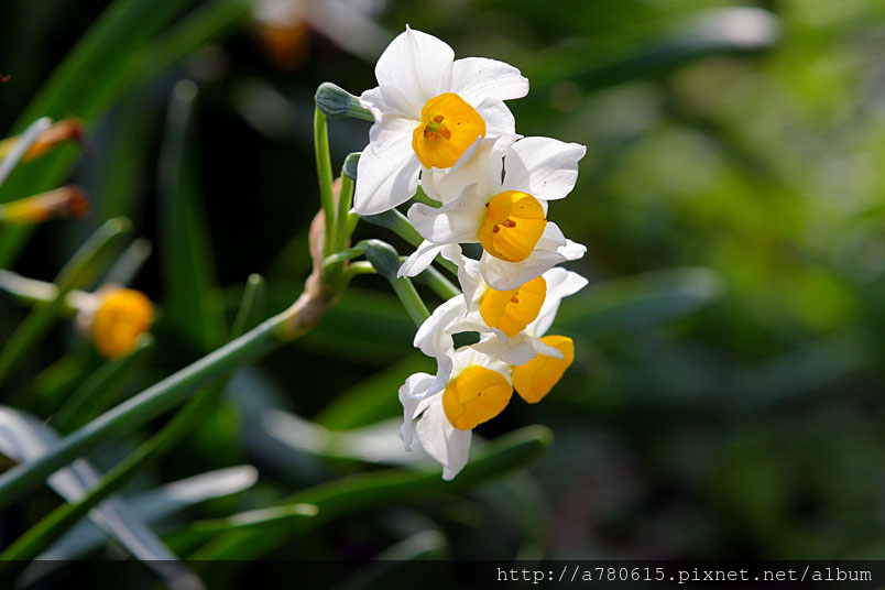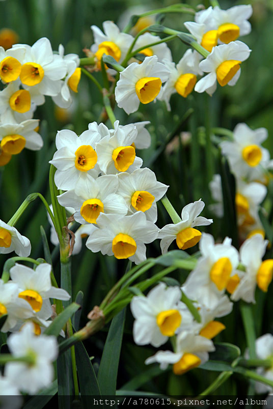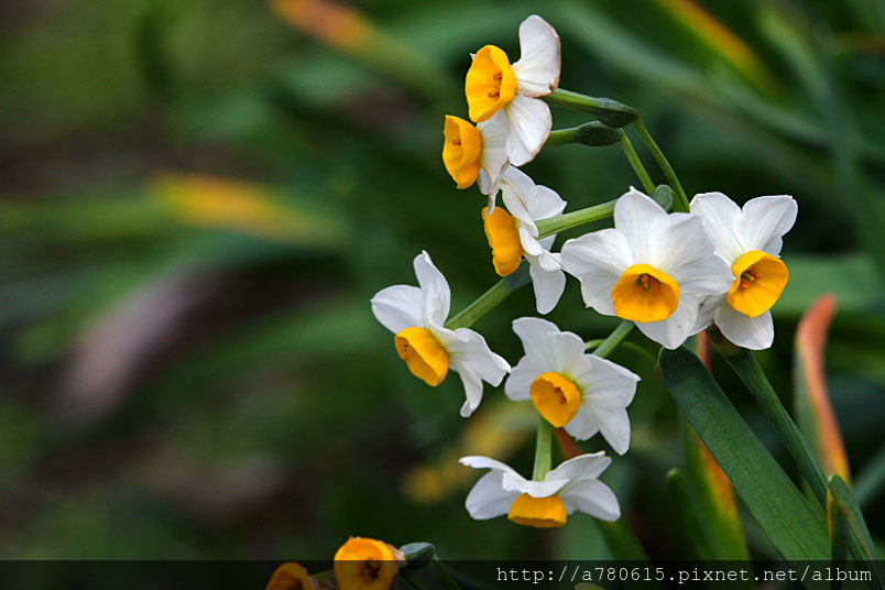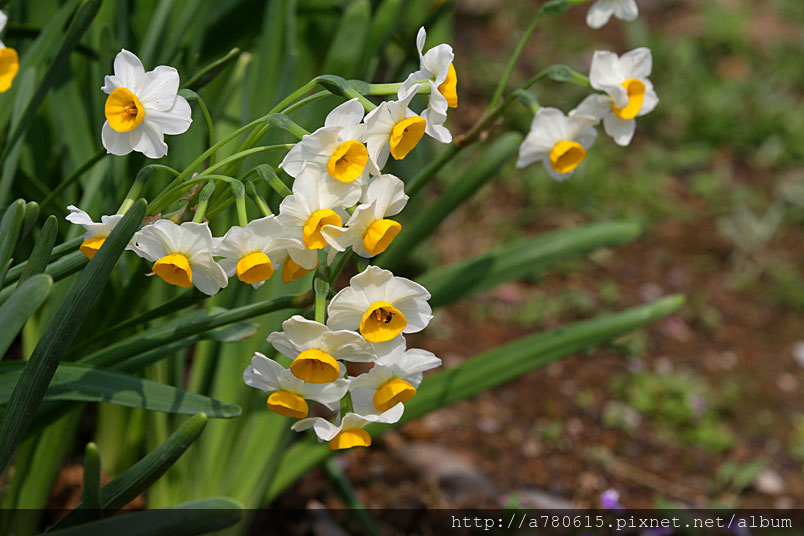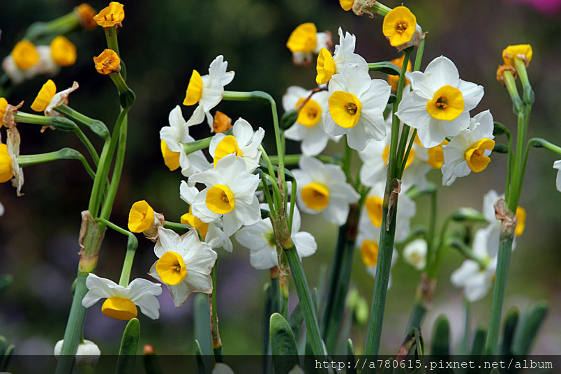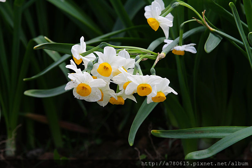 水仙的花自葉叢中抽出,中空管狀,繖房花序,花苞著生於莖頂,