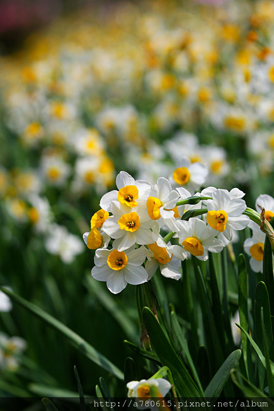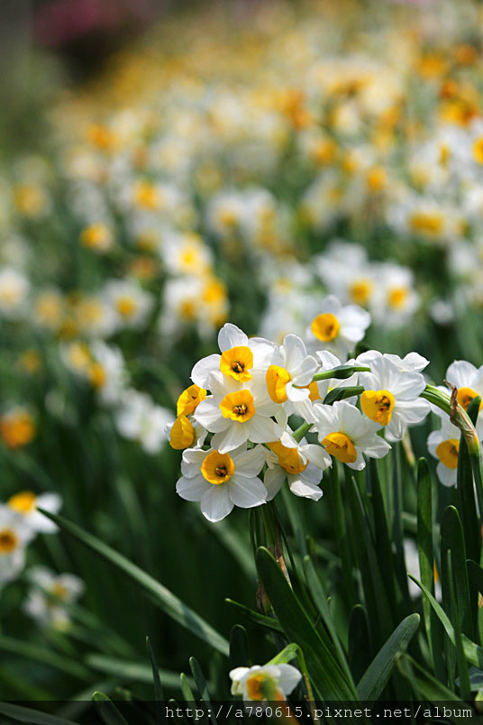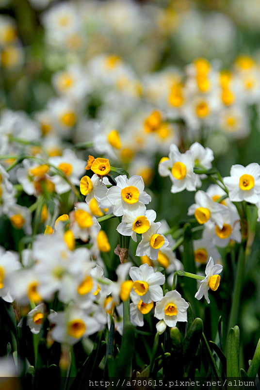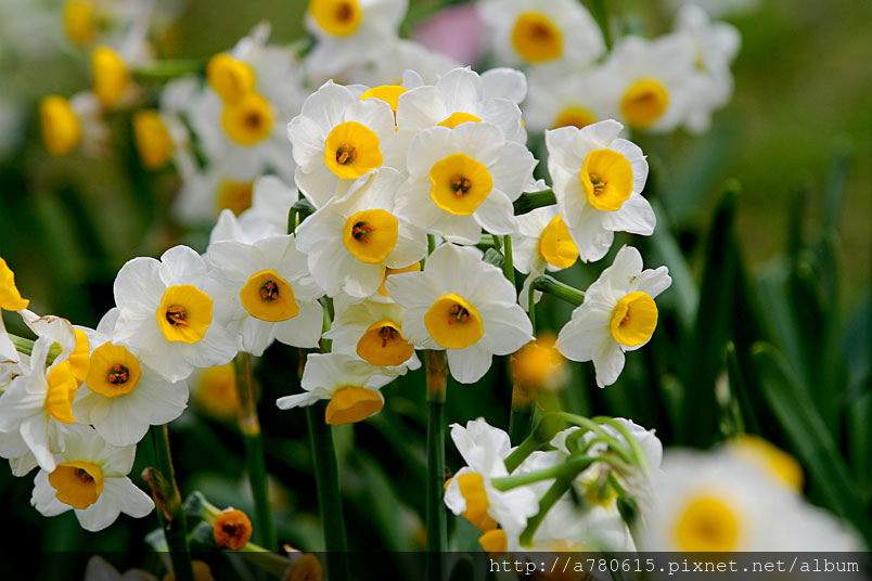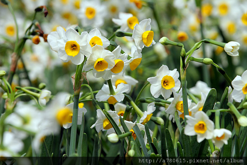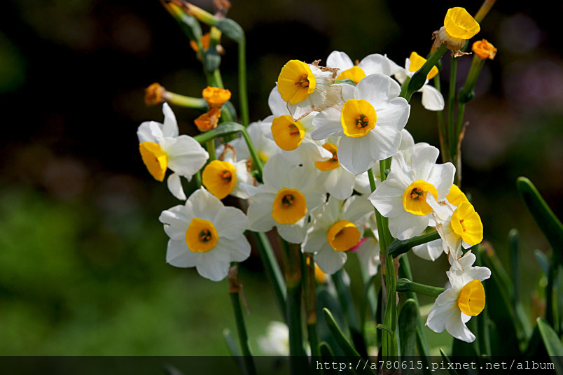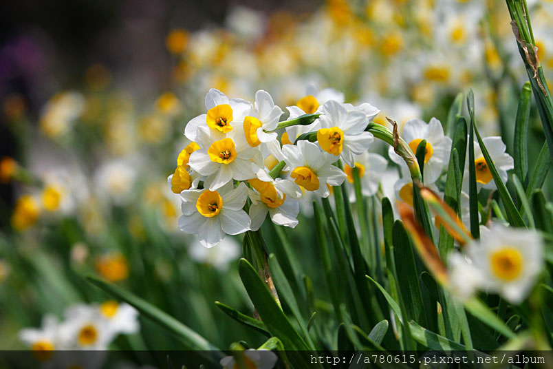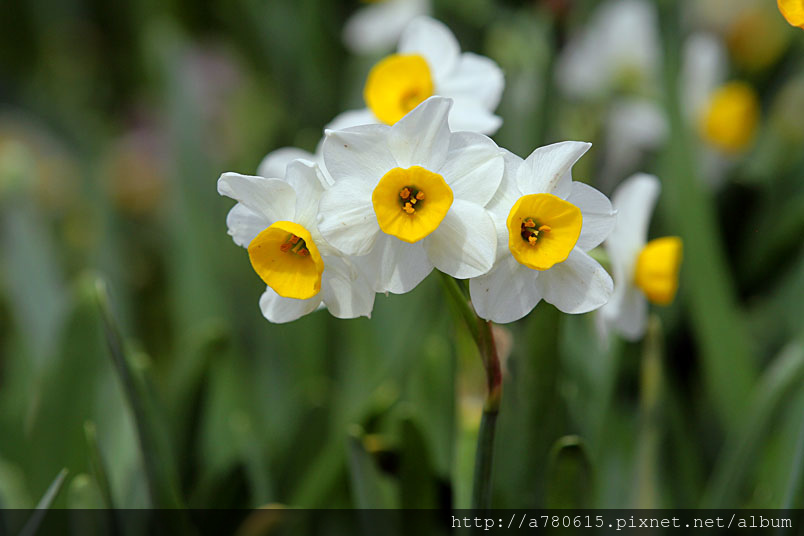 水仙的花自葉叢中抽出,中空管狀,繖房花序,花苞著生於莖頂,