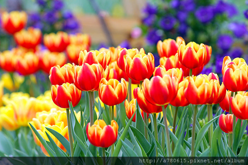 色,包括紅、黃、粉、紫、白、桔、黑、雙色等近7萬株鬱金香。