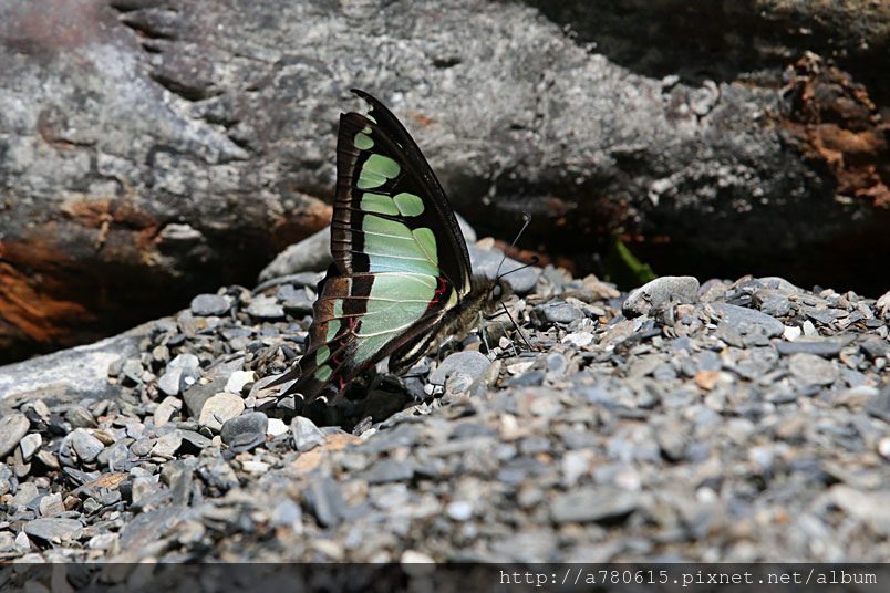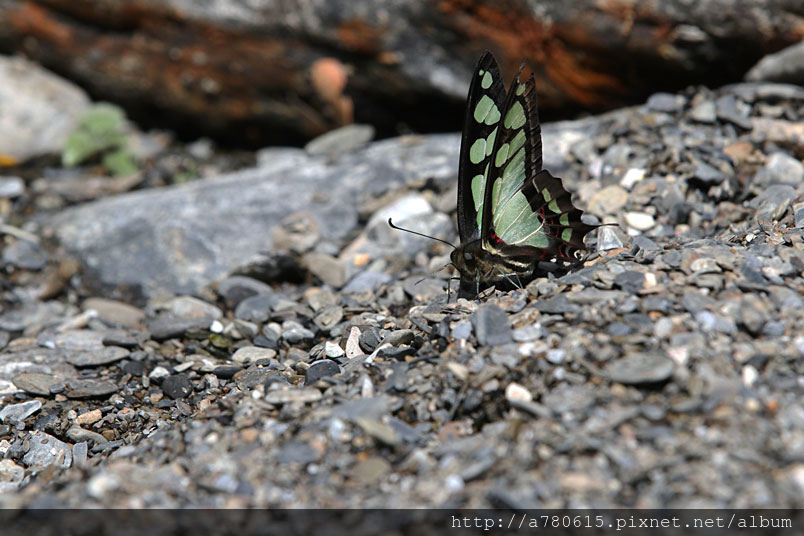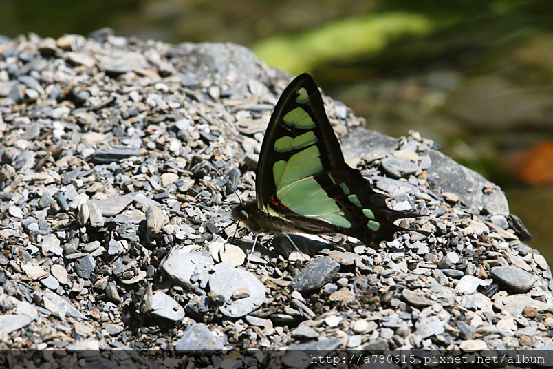 帶青斑鳳蝶,是夏季溪谷蝶道最重要的主角。雖然寬青帶鳳蝶的數