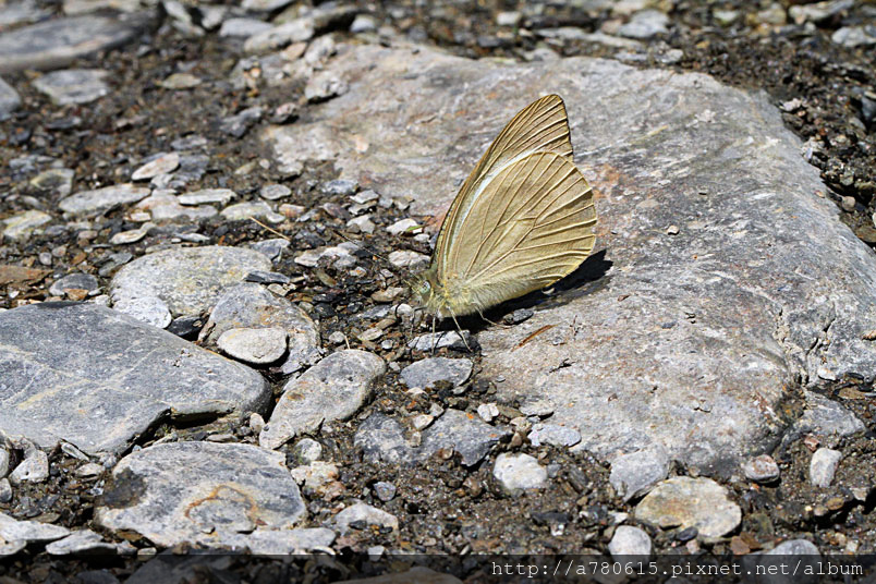雌白黃蝶,粉蝶科 / 異粉蝶屬),展翅50~65 mm,雄蝶翅膀表面