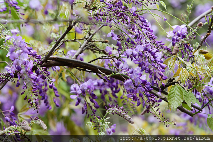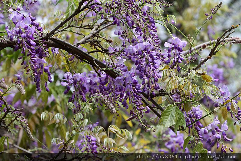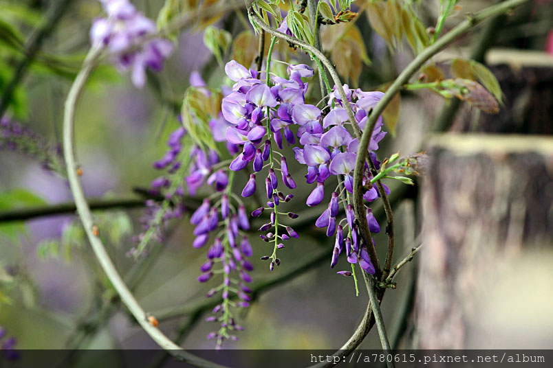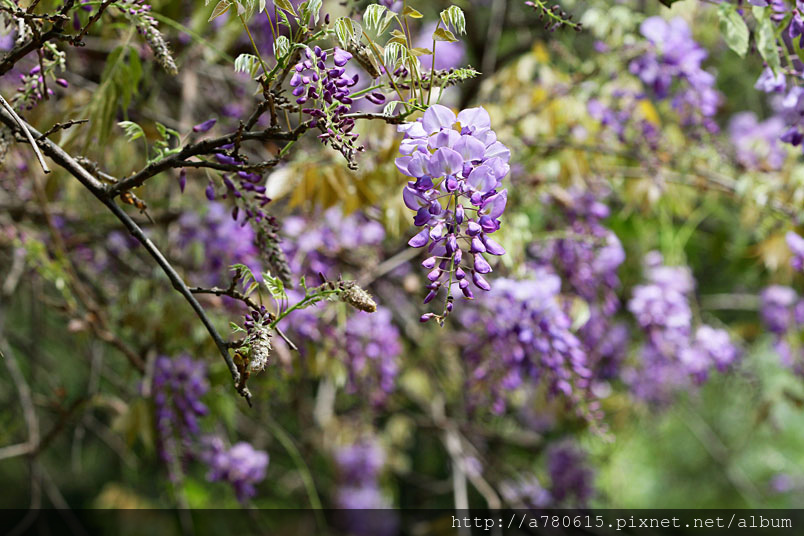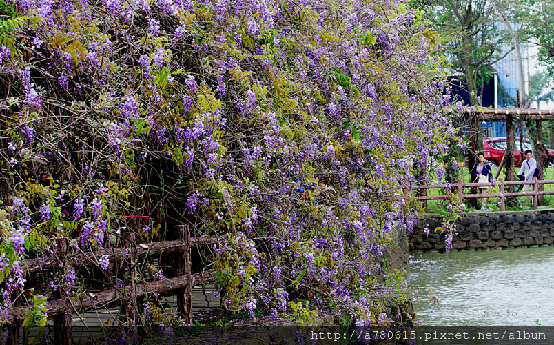 紫藤目前花開有3~4成,流蘇已滿開了。漫步在紫藤花隧道,迷人