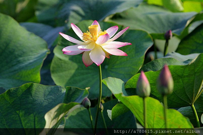 以前上攝影課的時候,老師說拍荷花最好是清晨,所以如果時間