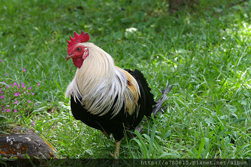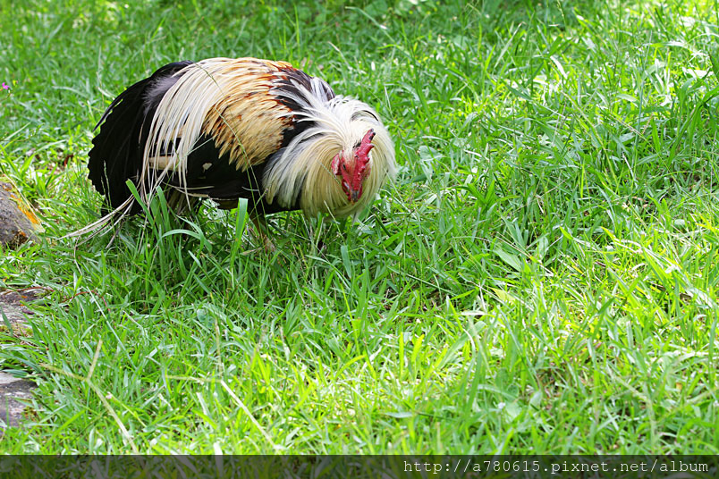 野放的雞,自由自在的在草地上覓食,到佛山寺除了拜拜,一定