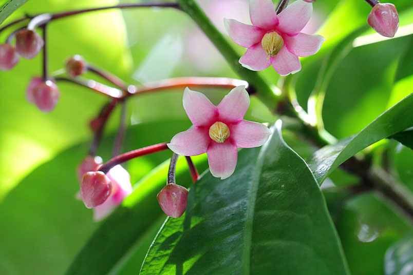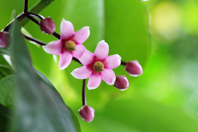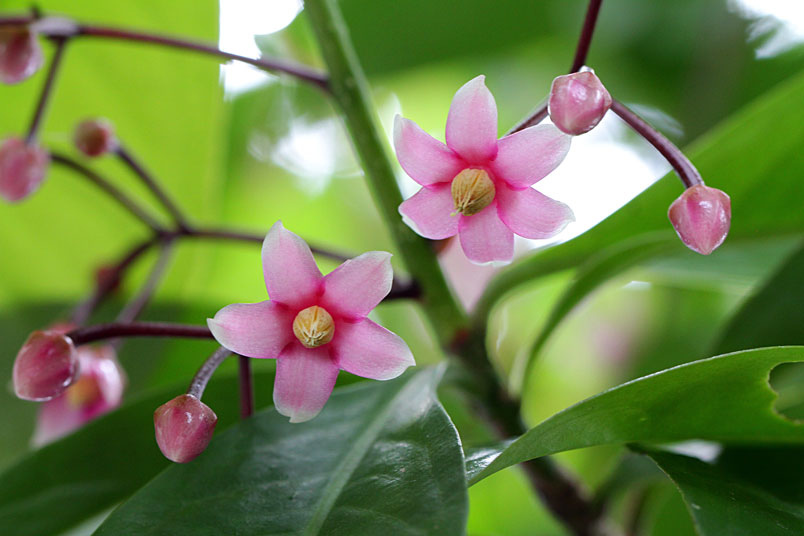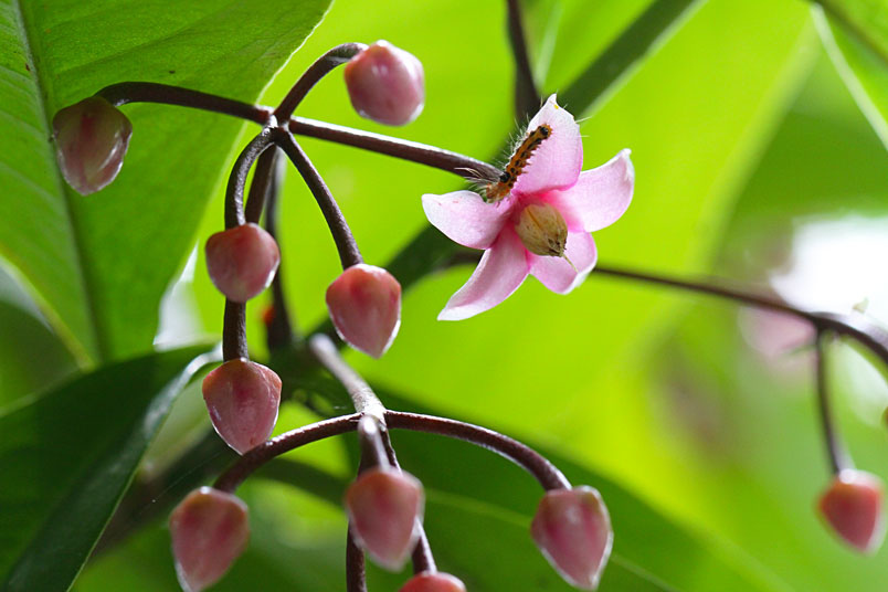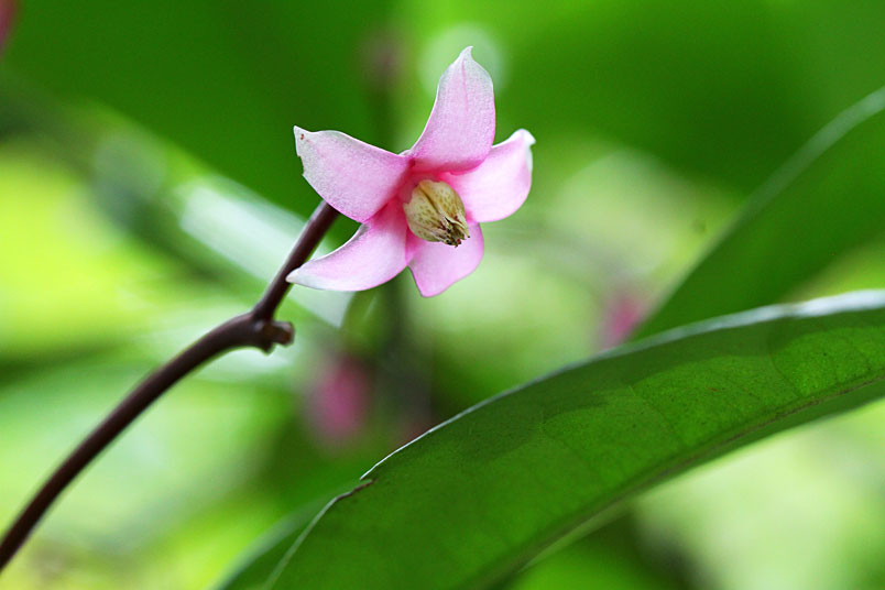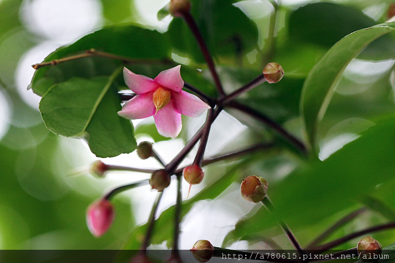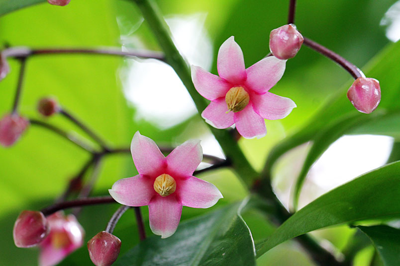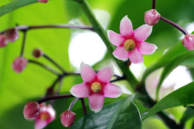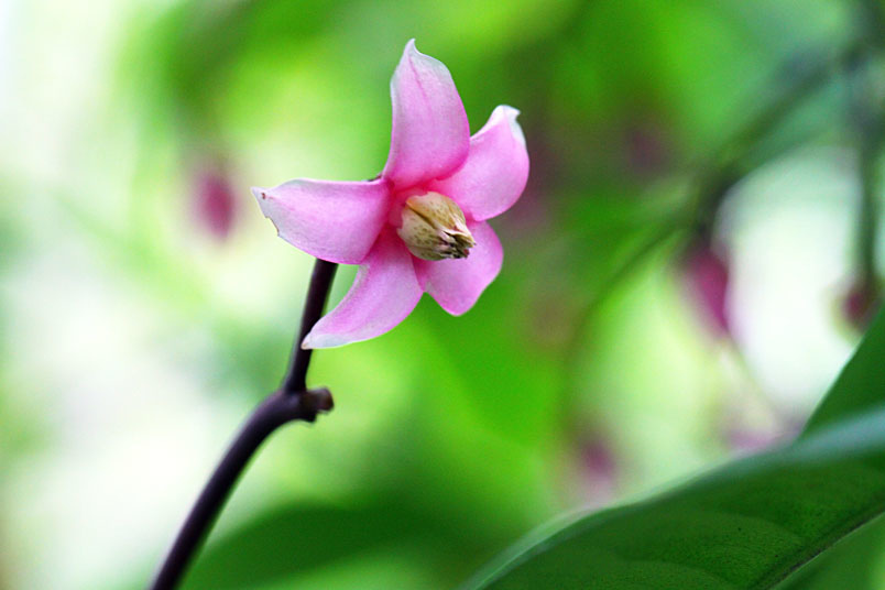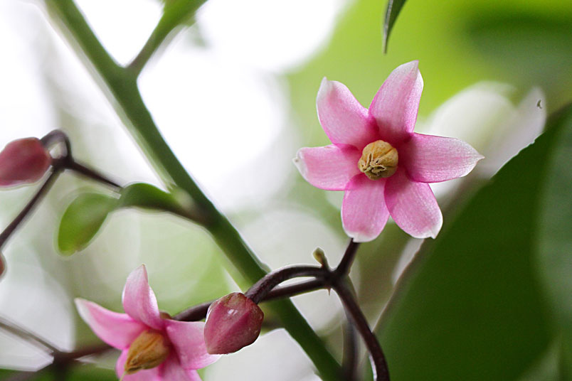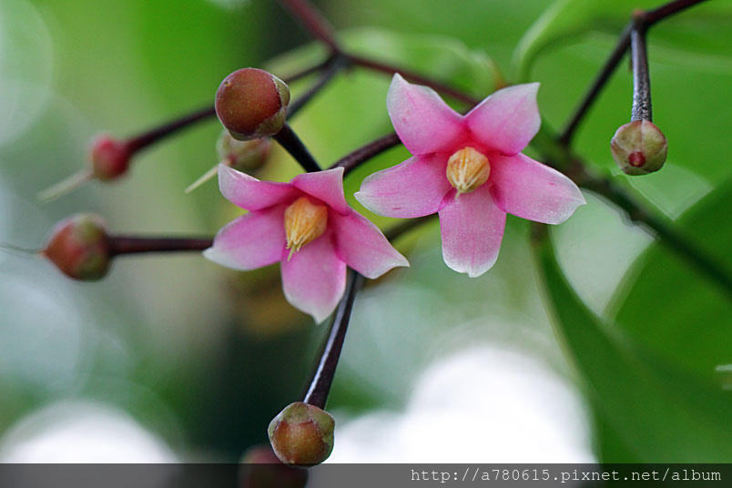 聚繖花序,單瓣5,花色粉紫色。花期晚春至秋。果色紫紅色。