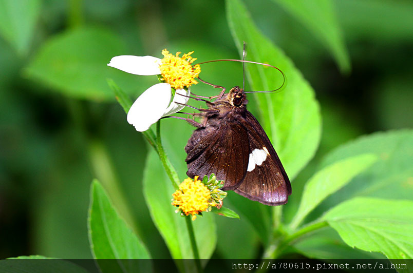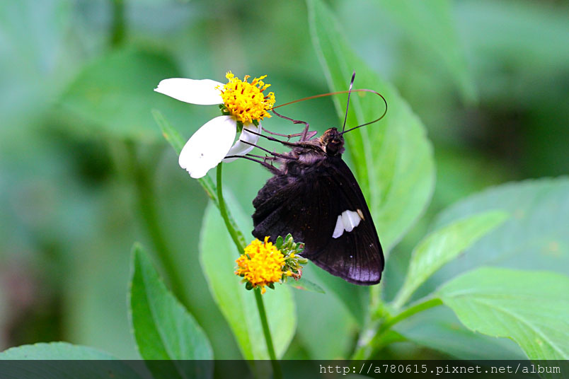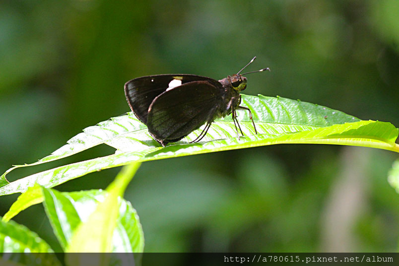 常見的黑弄蝶;不過阿里山黑弄蝶前翅的大白斑與翅外緣之間沒